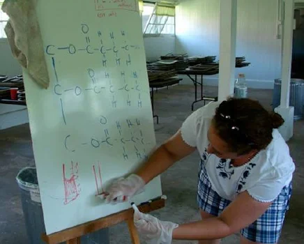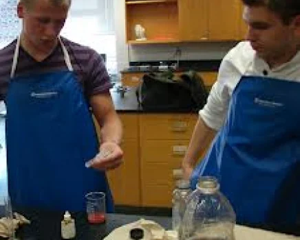 Honors chemistry students brewing biodiesel for their senior project, showed that it could be done in the classroom with equipment presently on campus.