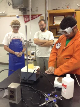 Clemson Biofuels and Bio Systems professor David Thornton visited Polk High and worked with chemistry teacher Mr. Zaleveskiy and biology teacher Kim Mirasola. David continually mentors Polk teachers while they develop their curriculum.